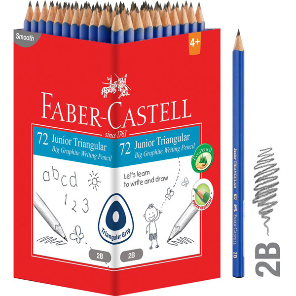 FABER-CASTELL JUNIOR GRIP TRIANGULAR GRAPHITE PENCIL 2B BOX 72