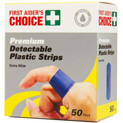 FIRST AIDERS CHOICE ADHESIVE DETECTABLE PLASTIC STRIPS BLUE PACK 50