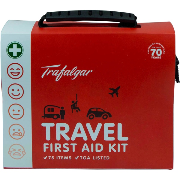 An Essential Travel Assessory On A Holiday! Treatment: Bleeding, Burns, Fractures And CPR It's a well known fact that while we are traveling the likelihood of small injuries especially in unfamiliar surroundings and doing activities such as sport or adventure we tend to induce more risk as well This 75 piece Travel first aid kit from Trafalgar is equipped to treat bleeding, burns, fractures and CPR and is a necessity on any trip away Compact and durable the case can fit easy in glove box or travel bag ensures your are equipped with the right first aid products at all times