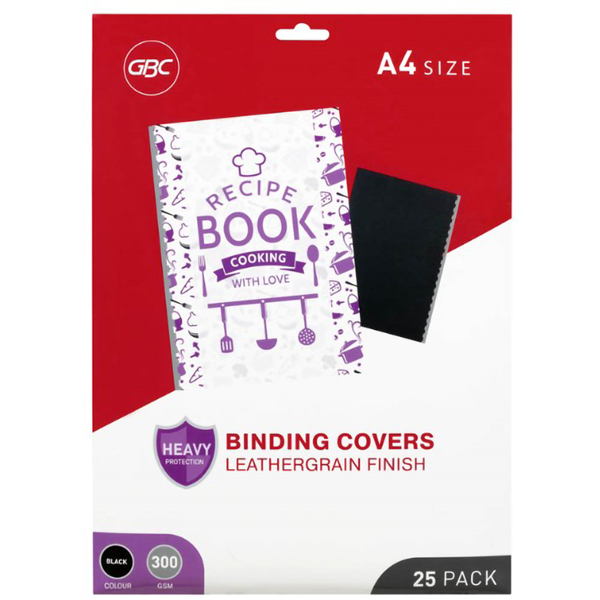 GBC IBICO BINDING COVER LEATHERGRAIN 300GSM A4 BLACK PACK 25