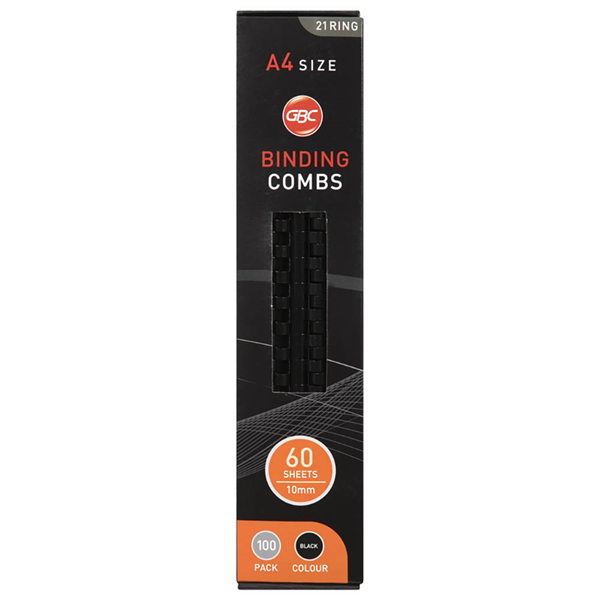 GBC PLASTIC BINDING COMB ROUND 21 LOOP 10MM A4 BLACK PACK 100
