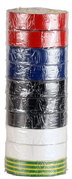 Extremely flexible and conformable PVC backing Ideal for cable and wire insulation Used for cable bundling, reinforcing and wire harness wrapping Great for colour coding of cables, containers etc Available in a pack of 10 rolls, 3 black, 2 white, 2 red, 2 blue and 1 green/yellow
