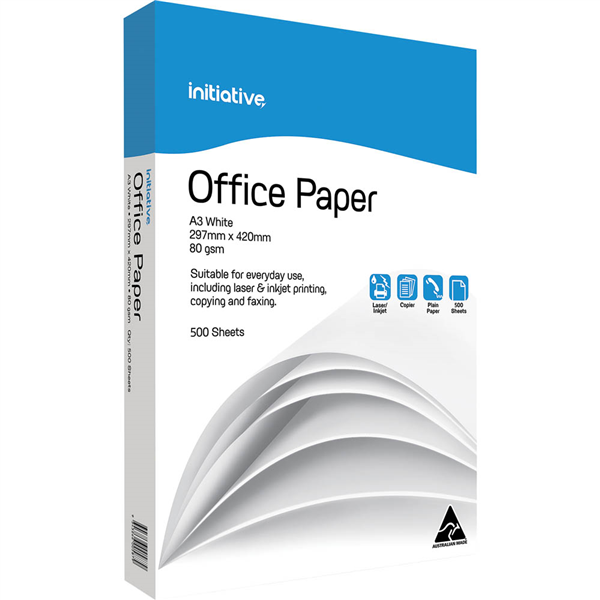 INITIATIVE A3 OFFICE COPY PAPER 80GSM WHITE PACK 500 SHEETS