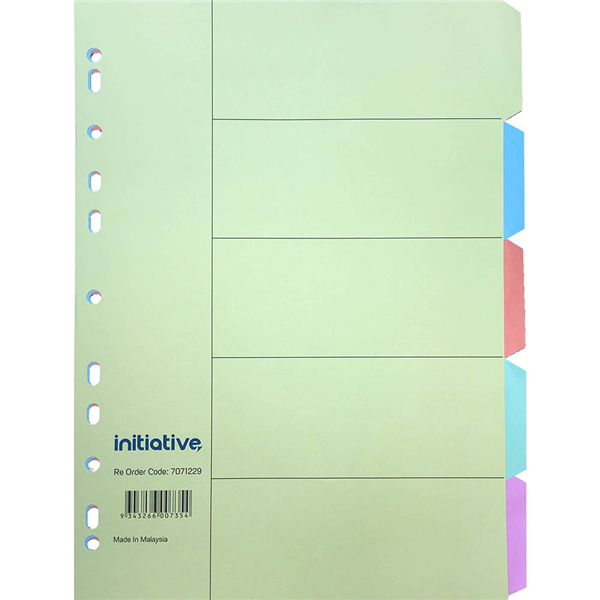 INITIATIVE DIVIDERS MANILLA 5 TAB A4 PASTEL COLOURS