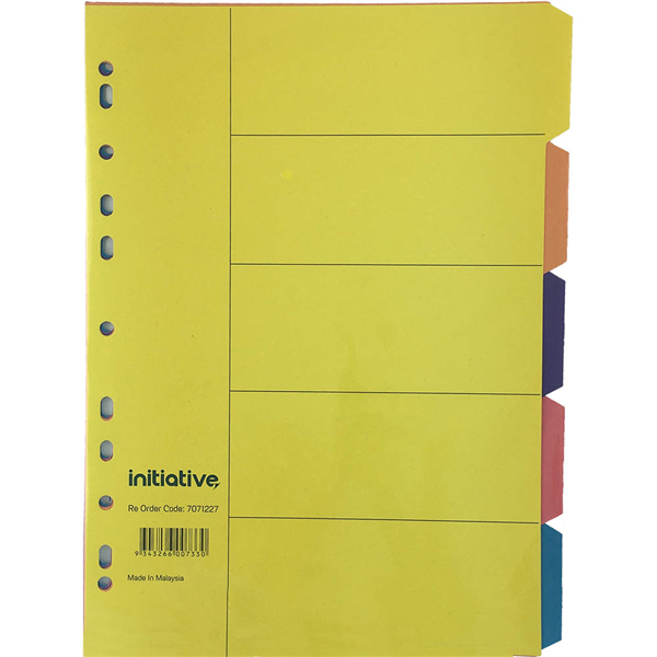 INITIATIVE DIVIDERS MANILLA 5-TAB A4 BRIGHT COLOURS
