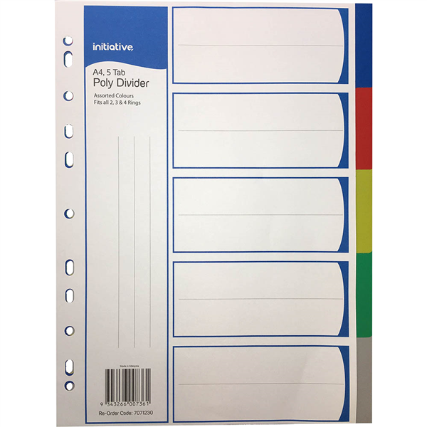 INITIATIVE DIVIDERS PP 5 TAB A4 ASSORTED COLOURS