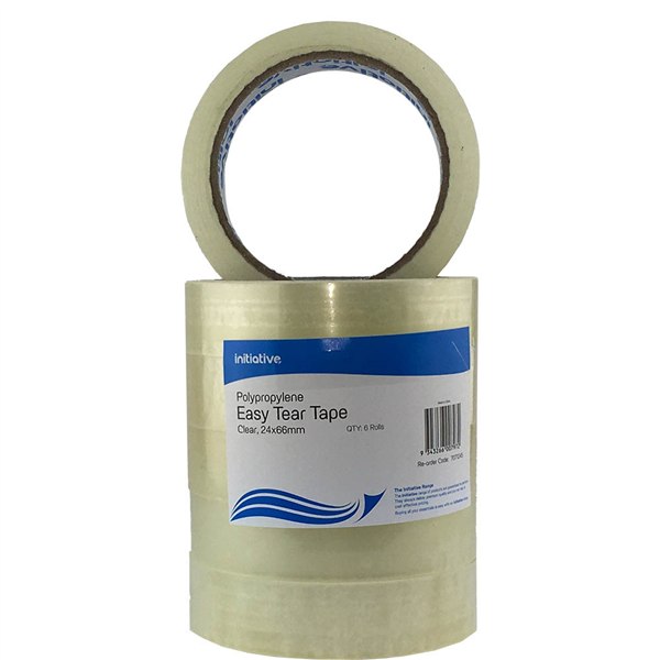INITIATIVE EASY TEAR TAPE PP 24MM X 66M CLEAR PACK 6