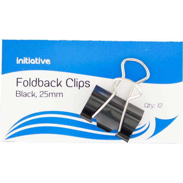 INITIATIVE FOLDBACK CLIP 25MM BLACK PACK 12