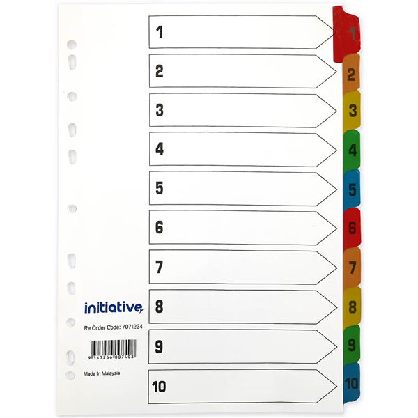 INITIATIVE INDEX DIVIDERS A4 1-10 TAB WHITE WITH MYLAR TABS