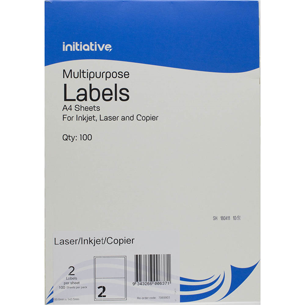 INITIATIVE MULTI-PURPOSE LABELS 2UP 65GSM 199.6 X 143.5MM PACK 100