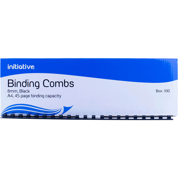 INITIATIVE PLASTIC BINDING COMB ROUND 21 LOOP 8MM A4 BLACK BOX 100