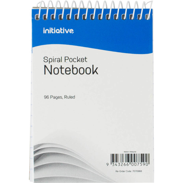 INITIATIVE SPIRAL NOTEBOOK POCKET TOP BOUND 96 PAGE 112 X 77MM