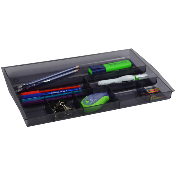 Translucent tints lighten your desk Economic accessories for your desk Traditional style matches to other common brands 8 compartments to keep your stationery organised Fits inside most traditional desk drawers 100% Australian made