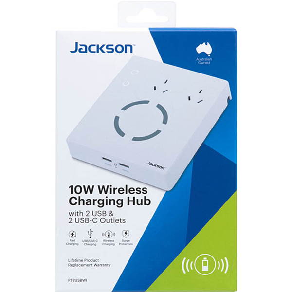JACKSON CHARGING HUB WIRELESS SURGE PROTECTED 2 OUTLET WITH USB OUTLETS