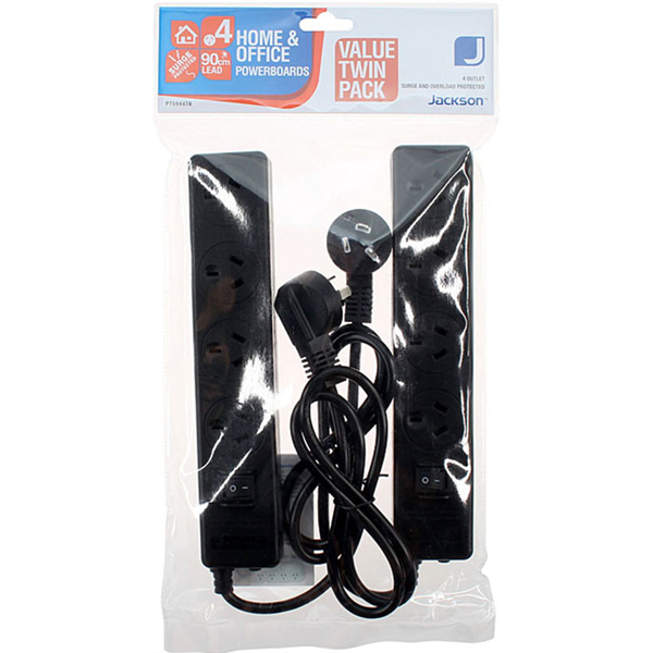 JACKSON POWERBOARD SURGE PROTECTED 4 OUTLET SWITCHED 900MM BLACK PACK 2