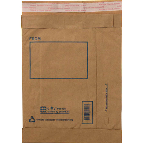 Jiffy padded mailbag provides cushioning protection with 100% recycled paper fibre interior