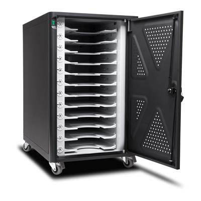 Holds up to 12 devices for charging and secured storage