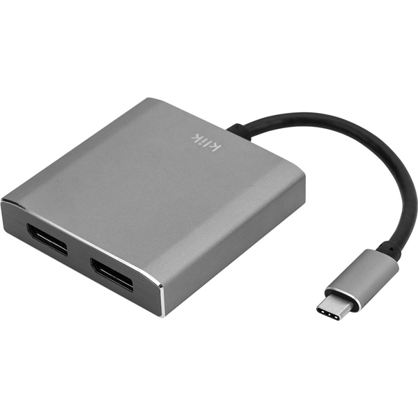 KLIK USB-C MALE TO DUAL DISPLAYPORT FEMALE ADAPTER SILVER