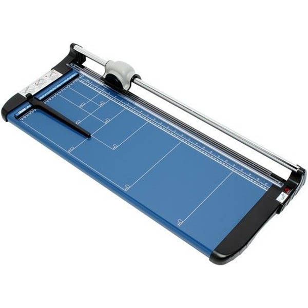 Strong and sturdy solid metal cutting base Ergonomic replaceable cutting head with self-sharpening rotary blade Transparent hand guard clamps on to paper while cutting Adjustable paper guide, scale marking with DIN paper sizes Wall mountable for easy storage A2 size cuts up to 12 sheets (80gsm paper) 1 year warranty