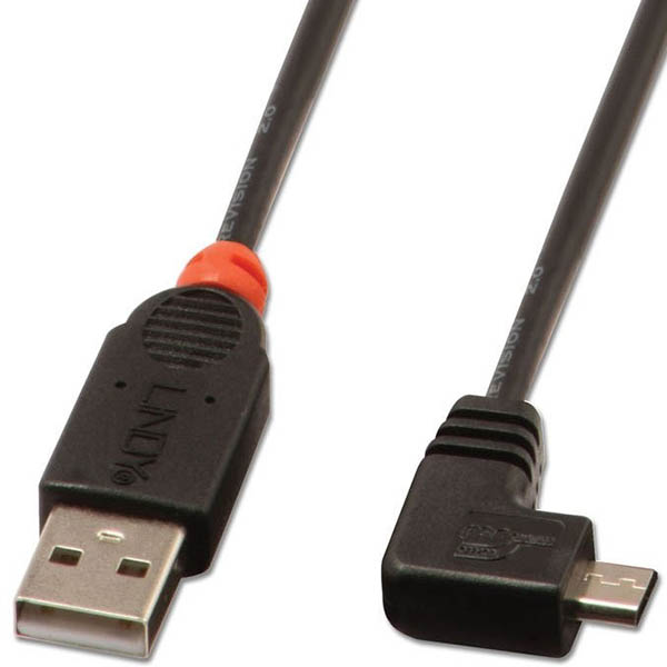 Lindy's range of Micro-B cables are ideal for users who use devices in several locations or those who just want a longer cable solution The cables 90 degree connector is designed to reduce the strain on your mobile devices USB port USB Type A Male to USB Micro-B 90 Degree Male USB 2.0 and USB 1.1 compatible Supports data transfer speeds of up to 480Mbps Fully moulded 10 year warranty Note: Manufacturers use various different connectors depending on make and model Before ordering this cable, please ensure that your device is fitted with the appropriate USB Micro-B type recepticle
