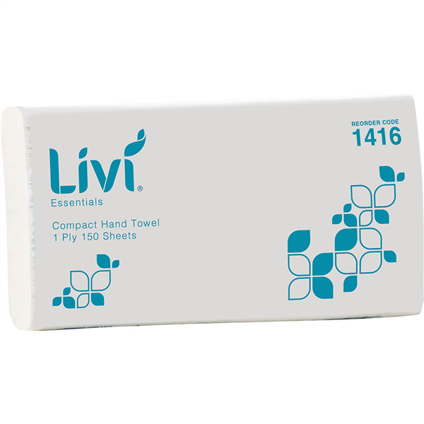 LIVI ESSENTIALS COMPACT HAND TOWEL 1-PLY 150 SHEET 200 X 250MM CARTON 16