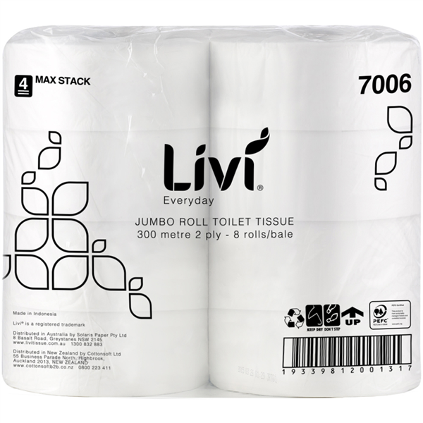 LIVI EVERYDAY 7006 JUMBO ROLL TOILET 2-PLY 300M CARTON 8