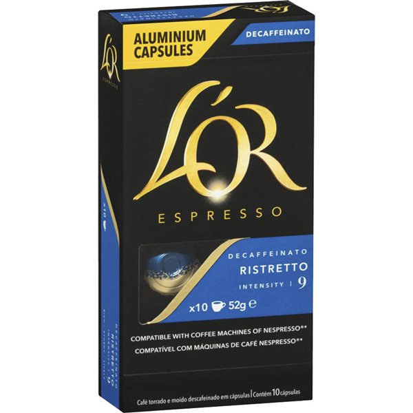 L'OR ESPRESSO NESPRESSO COMPATIBLE COFFEE CAPSULES RISTRETTO DECAF PACK 10