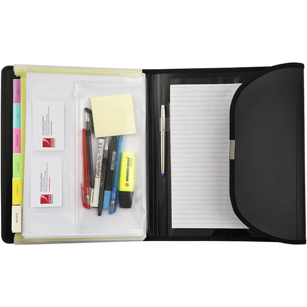 The marbig 5 pocket A4 compendium can be used to organise all your documents, notes, cards and CD's Includes a4 writing pad so you can start working straight away Tabbed pockets with inserts for quick and easy reference Pockets for business cards, CD's and documents Secure front fastener keeps your compendium closed and secure Made from heavy duty, environmentally friendly polypropylene Clean, smooth finish