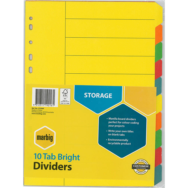MARBIG DIVIDER MANILLA 10-TAB A4 BRIGHT ASSORTED