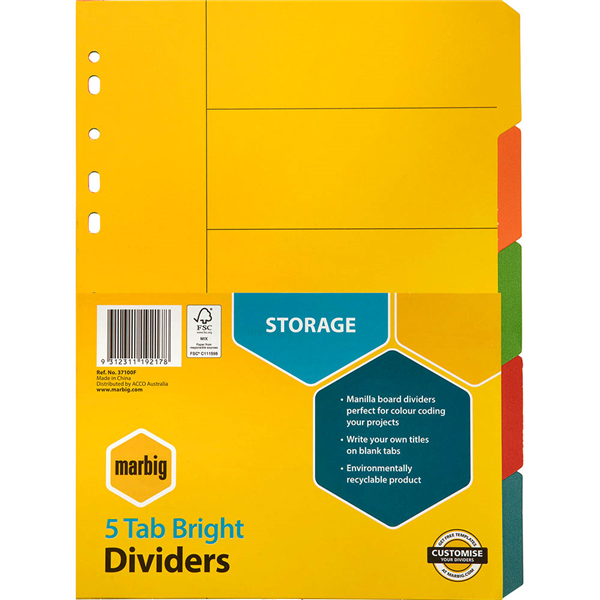 Marbig dividers are made from reinforced manilla board with plastic reinforced tabs and binder strips for durability and longer life