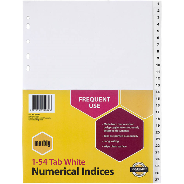 MARBIG INDEX DIVIDER PP 1-54 TAB A4 WHITE