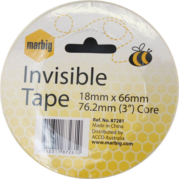 MARBIG INVISIBLE TAPE 18MM X 66M 76.2MM CORE