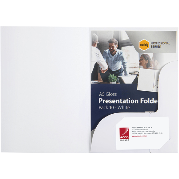 MARBIG PROFESSIONAL PRESENTATION FOLDER A5 GLOSS WHITE PACK 10