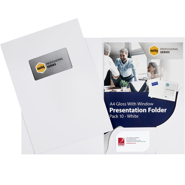 MARBIG PROFESSIONAL PRESENTATION FOLDER WITH WINDOW A4 GLOSS WHITE PACK 10