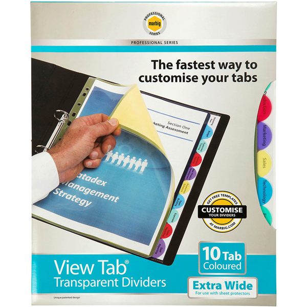 MARBIG PROFESSIONAL SERIES EXTRA WIDE VIEW-TAB DIVIDER PP 10-TAB A4 ASSORTED