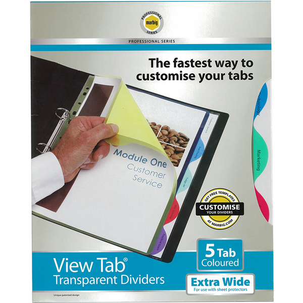 MARBIG PROFESSIONAL SERIES EXTRA WIDE VIEW-TAB DIVIDER PP 5-TAB A4 ASSORTED