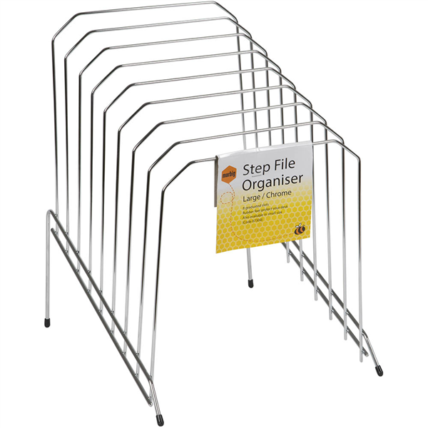 MARBIG STEP FILE WIRE ORGANISER RACK 8 SLOTS LARGE CHROME