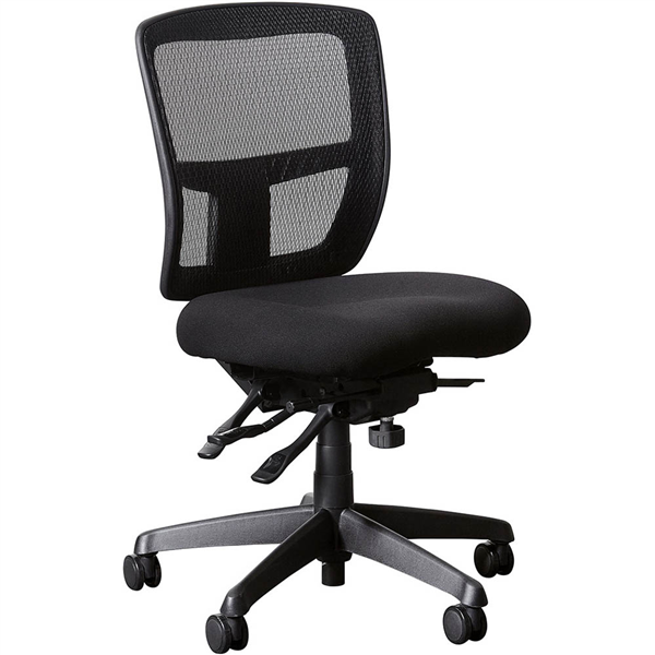 With a larger high back and seat then standard chairs it offers total comfort and full ergonomics for the user Airy elastomeric mesh back Ergonomically-contoured upholstered seat Pneumatic lift Swivel action Infinitely locking back and seat tilts Black nylon base Braking casters Meets ANSI/BIFMA and AS/NZS Test level 6 safety standards Ratchet back height adjustment 150KG indicative user weight