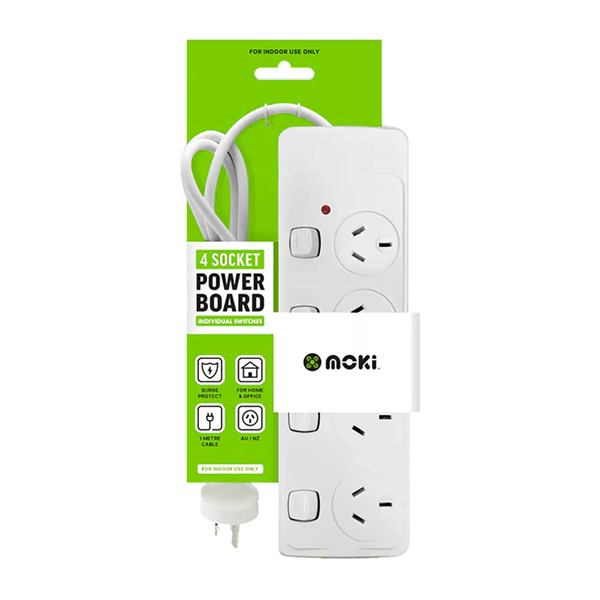 MOKI POWERBOARD 4 SOCKET WITH INDIVIDUAL SWITCHES 1M WHITE