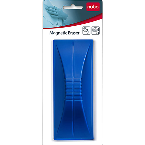 Easy to use Nobo magnetic drywipe eraser Features a durable moulded handle that fits comfortably in the hand Stores close to hand on any magnetic board Refill packs sold separately