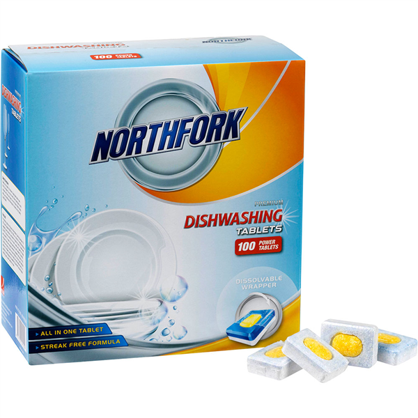 Northfork dishwashing tablets incorporate a superior cleaning formulation into one easy to use tablet