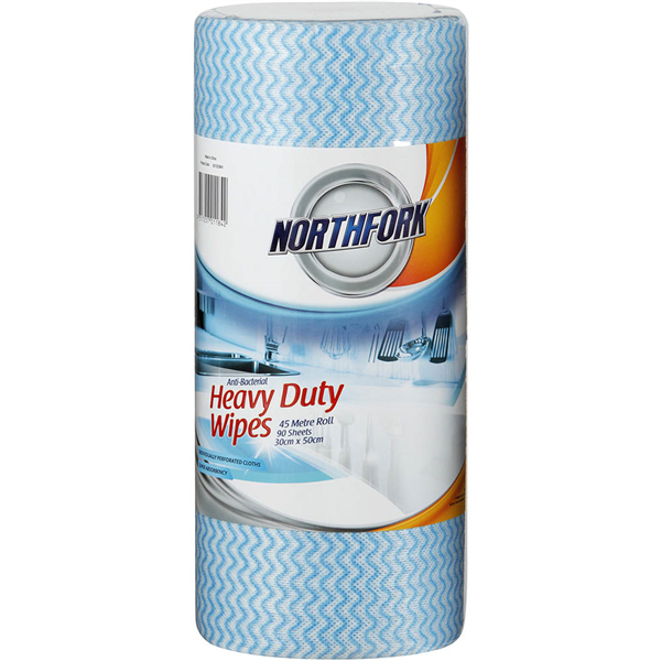 NORTHFORK HEAVY DUTY ANTIBACTERIAL PERFORATED WIPES 45M ROLL BLUE PACK 90 SHEETS