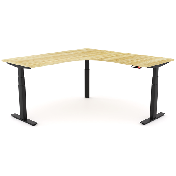 OLG AGILE ELECTRIC TRIPLE 3 COLUMN WORKSTATION LH 1800 X 1800 X 750MM BLACK FRAME NEW OAK TOP
