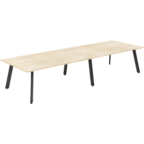 OLG FLARE TABLE 6 LEG BLACK FRAME 3600MM X 1200MM NEW OAK RAVINE 2-PIECE TOP