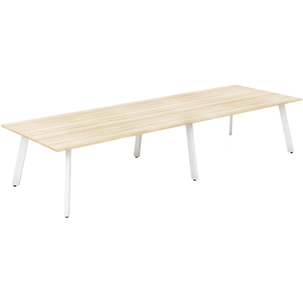 OLG FLARE TABLE 6 LEG WHITE FRAME 3600MM X 1200MM NEW OAK RAVINE 2-PIECE TOP