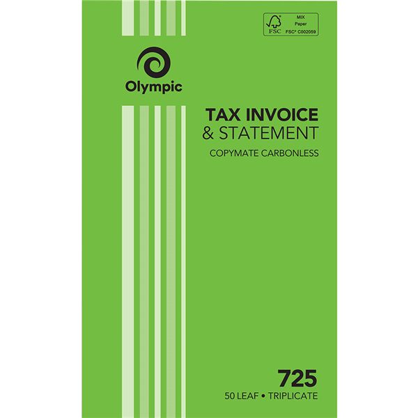 OLYMPIC 725 INVOICE AND STATEMENT BOOK CARBONLESS TRIPLICATE 50 LEAF 200 X 125MM