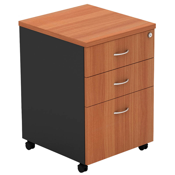 OM MOBILE PEDESTAL 3-DRAWER LOCKABLE 468 X 510 X 685MM CHERRY/CHARCOAL