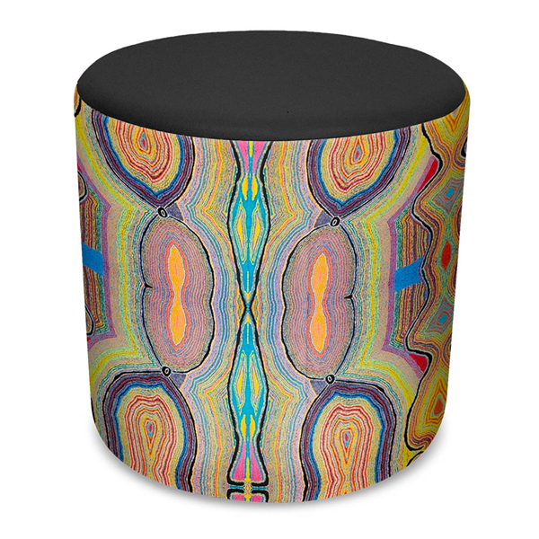 Built to withstand demanding classrooms and high traffic areas featuring a solid inner foam core and quality fabric finishings with reinforced seams and stitching The ottoman allows you to create a flexible workspace with quality soft seating to complement any classroom configuration and encourage social interaction and collaborative learning They are perfect for education spaces, reception, universities, or any of?ce areas with indigenous fabric and K2 commercial PU leather to upholster the ottoman It is also a unique commercial fabrics designed by Nelly Patterson (Indigenous artist) combined with K2 Commercial Black PU Leather to upholster the ottoman