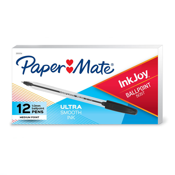 PAPERMATE INKJOY 100 BALLPOINT PENS MEDIUM BLACK BOX 12