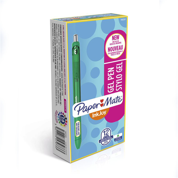 PAPERMATE INKJOY RETRACTABLE GEL PEN MEDIUM 0.7MM GREEN BOX 12